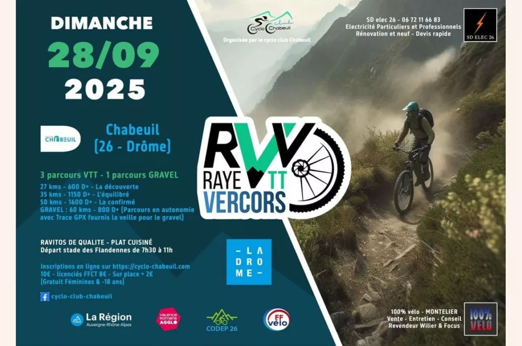 L’association Les Amis de la Tour de Barcelonne participera à la Rando VTT Vercors organisée par le Cyclo-Club de Chabeuil en tenant un ravitaillement au pied de la Tour de Barcelonne!
